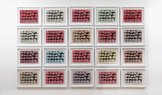 In a world of industrial foods devoid of season, colors and flavors are created, enhanced and presented as improvements on nature. Enhanced Varieties, prints of peaches toned in various flavors of Jell-O, mirror the human-made varieties that beckon us from our supermarket shelves.